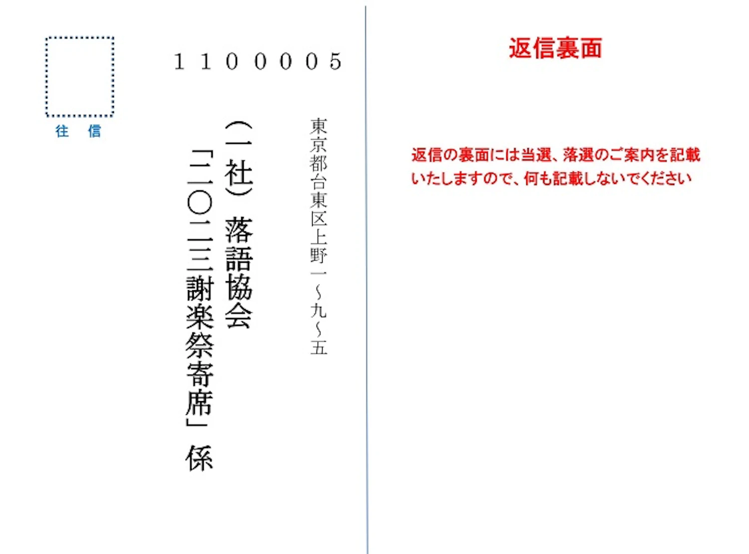 一般社団法人落語協会 謝楽祭「2023謝楽祭寄席」係