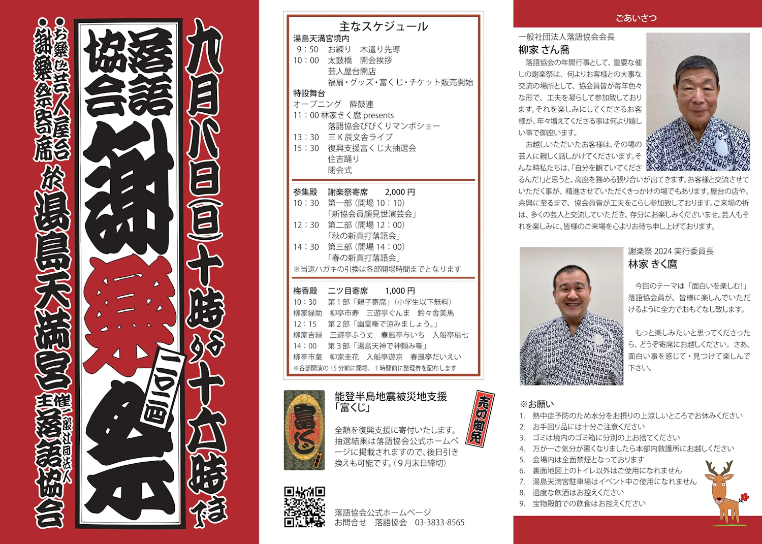 「落語協会謝楽祭」のお知らせ(入場無料・雨天決行)